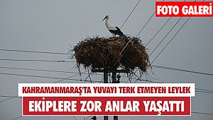 Bir süre sonra dönen leylek, ekipler yaklaşınca yeniden