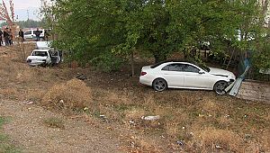 Çarpmanın etkisiyle otomobiller yol kenarındaki bahçeye