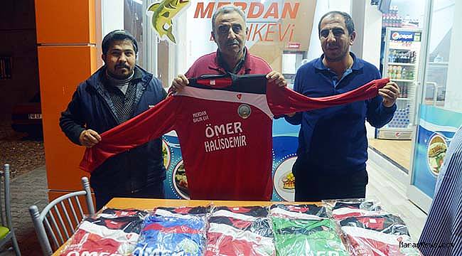 işletme sahibi İbrahim ve Mahmut Sarı Çukurkuyu Belediyespor’a kışlık forma takımı