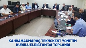 Kahramanmaraş Sütçü İmam Üniversitesi (KSÜ) Rektörü ve Teknokent Yönetim Kurulu Başkanı Prof. Dr. Niyazi Can başkanlığında, Elbistan Ticaret ve Sanayi Odası (ETSO) Yönetim Kurulu Başkanı ve aynı zamanda Teknokent Yönetim Kurulu Üyesi Mustafa Paksoy’un ev sahipliğinde gerçekleştirilen toplantıya; KMTSO Temsilcisi Furkan Bayazıt, Yönetim Kurulu Üyeleri Kemal Arıkan, Kamil Dedeoğlu, Mustafa Hançer, Öğr. Gör. Mesut Bilginer, Prof. Dr.Mustafa Şekkeli, Doç. Dr. Tamer Rızaoğlu, Türkoğlu OSB Temsilcisi Osman Okumuş, Teknokent Genel Müdürü Prof. Dr. Mehmet Tekerek, Teknokent Genel Müdür Yardımcıları Doç. Dr. Selim Eren ile Öğr. Gör. Oğuz Ciğerlioğlu, Afşin Elbistan B Termik Santrali Müdürü Mustafa Akın ve Elbistan OSB Müdürü Sefa Demir katıldı.