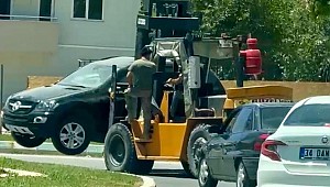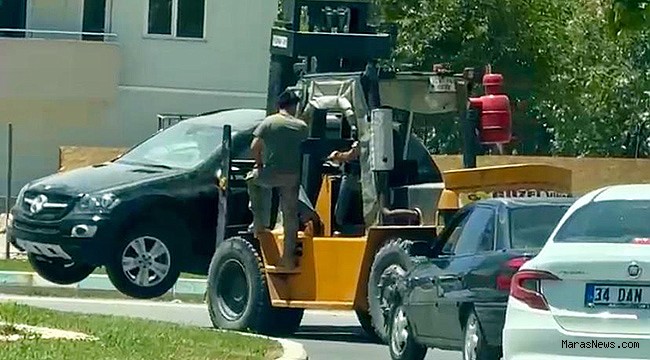 Edinilen bilgiye göre; Dulkadiroğlu ilçesi diş hastanesi kavşağında şehiriçi trafiğinde forklift üzerinde otomobil taşıyan operatörü fark eden diğer sürücüler o anları cep telefonu kamerasıyla görüntüledi. Görüntülerde forklift operatörü, yan tarafında bulunan bir kişinin yönlendirmesiyle hareket ettiği görülüyor.