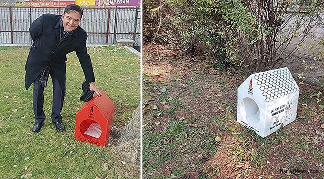 Onikişubat Belediyesi’nden temin edilen kedi evleri, valilik bahçesinin çeşitli noktalarına yerleştirerek mama bırakıldı. Kış şartlarına uygun olarak özel üretilen kedi evleri sayesinde, sokak hayvanları artık daha mutlu.