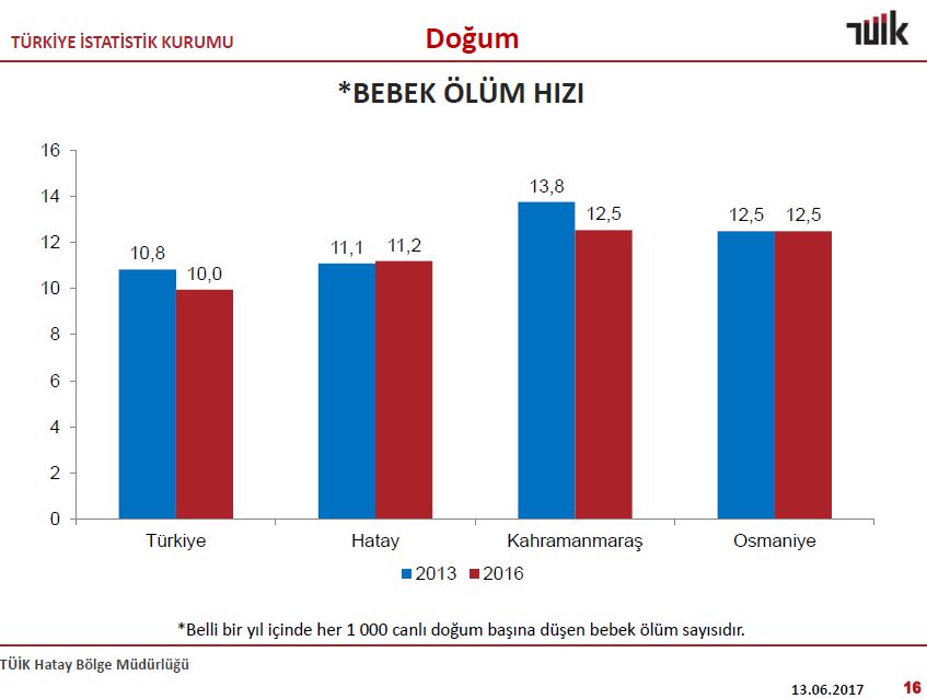 düşüş yaşandı. 2013 yılında binde 13.8 olan bebek ölüm hızı, 2016 yılında binde