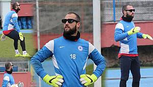 Değil… Kaleci Ferdi Yalçın, idmanda gözlük taktı. Güneş gözlüğü görünümündeki