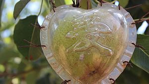 kaplarla, kalp şeklinde üretilen armutun tanesi 10-15 liradan satılıyor.