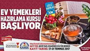 olan Ev Yemekleri Hazırlama Kursu kayıt tarihi 17 Temmuz 2017 tarihinde başlayarak