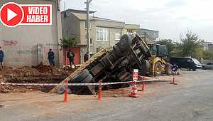plakalı kamyon, yolun çökmesiyle kanalizasyon çukuruna düştü. Düşme anında