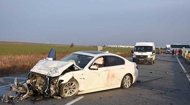 aracının, aynı istikamette seyir halindeki iki servis aracına çarpması sonucu