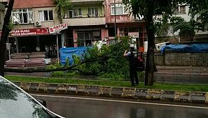 yola devrildi. Ağacın devrilmesi ile birlikte yolun bir bölümü kısa süreliğine