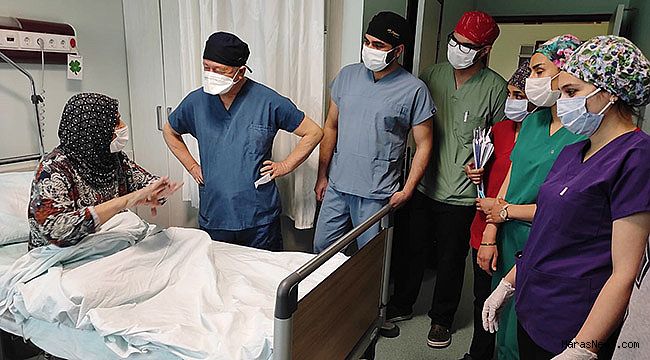 Sena Ammari ise savaş nedeniyle 9 yıl önce Türkiye'ye geldiğini, 6 ay önce karnı ağrımaya başlayınca Necip Fazıl şehir Hastanesine gittiğini belirterek, "Burada yapılan tetkikler sonrasında karnımda bir kanser kitlesi olduğu belirlendi. Oradan beni KSÜ Tıp Fakültesi Hastanesine gönderdiler. Burada yapılan tetkikler sonucunda da kitlenin tehlikeli olduğunu ama hocalarımız kemoterapiye gerek kalmadan ameliyat yapacaklarını söylediler. Türkiye'den Allah razı olsun. Bana kitleyi telefonda göstermişti doktorlarımız. Karnımda çıkan kitleyi gördükten sonra çok şaşırdım 'Bu benden mi çıktı, ben nasıl bu hale geldim, nasıl iyileştim?' diye. Bu konuda çok teşekkür ediyorum sayın doktorlarımıza ve hastane yetkililerimize." dedi.