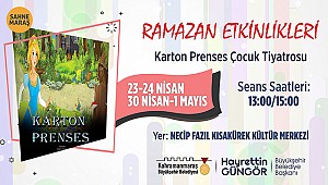Kültür Spor ve Turizm Dairesi Başkanlığı’ndan etkinliklere ilişkin yapılan açıklamada, “Ramazan etkinliklerinde birbirinden eğlenceli ve öğretici programları Kahramanmaraşlılarla buluşturmaya devam ediyoruz. Bu kapsamda, miniklerin hafta sonunu daha eğlenceli hale getirmek ve sosyalleşmelerine katkıda bulunmak için 23 – 24 – 30 Nisan ve 1 Mayıs tarihlerinde ‘Karton Prenses’ adlı çocuk oyunu sahnelenecek. Necip Fazıl Kısakürek Kültür Merkezi’nde Sahne Maraş Tiyatro Okulu öğrencileri tarafından sahnelenecek oyuna tüm minikler davetlidir” ifadelerine yer verildi.