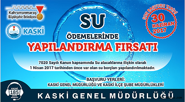 Vatandaşların 30 Haziran 2017 tarihine kadar KASKİ Genel