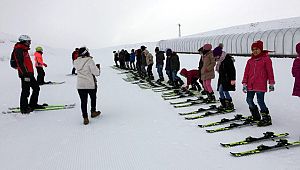 Yedikuyular Kayak Akademisi’nde öğrenciler okullarından alınıp, kayak malzemeleri giydirilerek profesyonel hocalar eşliğinde kayak dersleri veriliyor.