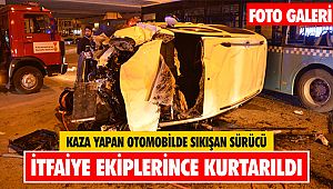 Kazada otomobil sürücüsü Metehan B. araçta sıkıştı.