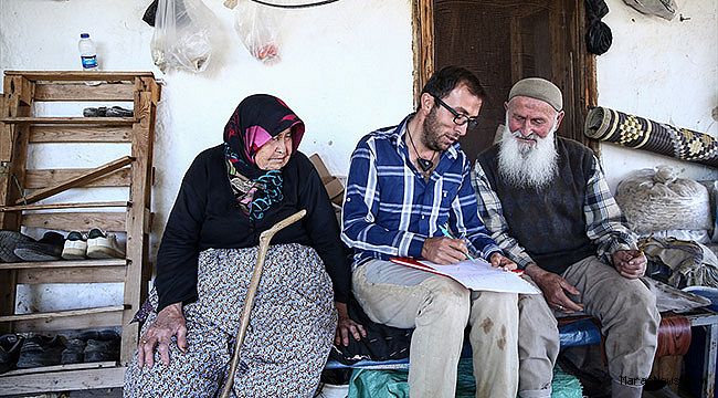 masal okuduğu çocukların ödevlerine yardım ediyor. Yaşlılara ve çobanlara okuma