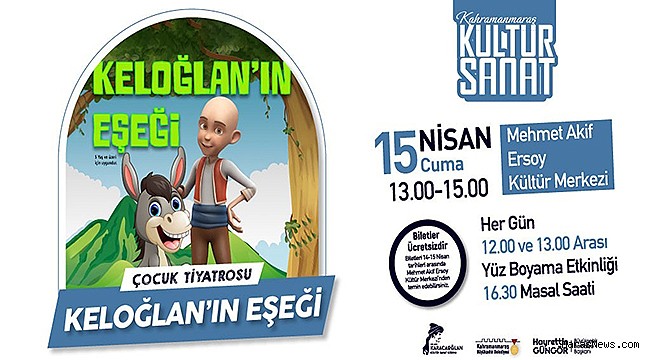 Kahramanmaraş Büyükşehir Belediyesi, tiyatro gösterileri, masal saati ve yüz boyama gibi birbirinden renkli ve eğlenceli etkinlikleri miniklerle buluşturmaya devam ediyor. Bu kapsamda, 15 Nisan Cuma günü (yarın) ‘Keloğlan’ın Eşeği’ adlı çocuk tiyatrosu minikler için sahne alacak. Hikâyelerin ve çizgi filmlerin ölümsüz kahramanı Keloğlan, bu sefer de minikler için sahneye uyarlanacak. Kardeşlik, arkadaşlık ve dostluk temalarının ön planda tutulduğu oyun Mehmet Akif Ersoy Kültür Merkezi’nde miniklerle buluşacak. Saat 13.00 ve 15.00’da iki seans şeklinde sahnelenecek oyunun biletleri ücretsiz olarak Mehmet Akif Ersoy Kültür Merkezi’nden temin edilebiliyor. Yine aynı gün 12.00 – 13.00 saatleri arasında gerçekleştirilecek yüz boyama etkinliği ve 16.30’da düzenlenecek masal saatine de tüm minikler davet edildi.