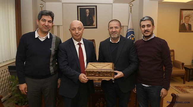 Kervancıoğlu, kültür, turizm ve gastronomi üzerine istişarelerin de gerçekleştiği ziyaretin anısına Rektör Bakan’a, Kahramanmaraş'a özgü ceviz oyma sandık takdim etti.