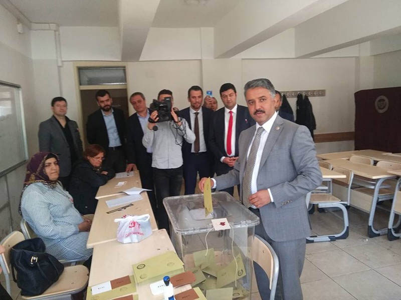 ilk oy veren seçmen Ekinözü Belediye Başkanı Nursi Çeleğen oldu.