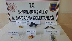 Jandarma ekiplerince araç içerisinde yapılan aramada ise, 2 adet cumhuriyet altını, 1 adet yarım altın, 2 adet sustalı bıçak, 1 adet kurusıkıdan çevirme tabanca, 17 adet 7.62 mm fişek ve araç içerisinde bulunan hassas teraziye el konuldu.