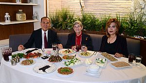 Başkan Hüseyin Sözlü ve eşi Zeynep Sözlü, Prof. Dr. Canan Karatay’ı Adana Kebabı, ciğer kebabı, şaglam suyu, turp, karışık turşu, salata çeşitleri, yoğurt, mercimekli bulgur pilavı, tereyağı, keçi peyniri ve koyun peynirinin bulunduğu sofrada misafir etti. Sağlıklı beslenme üzerine yapılan sohbette Sözlü çiftinin sorularını cevaplandıran Prof. Dr. Canan Karatay, kuyruk yağlı kebap, ciğer kebabı, şalgam suyu, turp ve turşu çeşitlerinin çok faydalı gıdalar olduğunu söyledi. Proteinin yağıyla birlikte yendiği zaman vücuda fayda sağladığını anlatan Karatay mevsimine göre sebze tüketiminin önemine değindi.