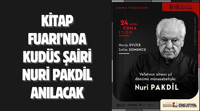 Kahramanmaraş Büyükşehir Belediyesi tarafından “Gel ve Hayatı Anla” temasıyla bu yıl 10’uncusu düzenlenen Uluslararası Kahramanmaraş Kitap Fuarı, kitap şöleninin yanı sıra kültür ve edebiyat dünyasına ışık tutan özel etkinliklere de ev sahipliği yapmayı sürdürüyor. Bu kapsamda, Türk edebiyatının öncü isimlerinden, düşünce ve şiir dünyamızda derin izler bırakan Kudüs Şairi Nuri Pakdil, vefatının altıncı yıl dönümünde özel bir programla anılacak.