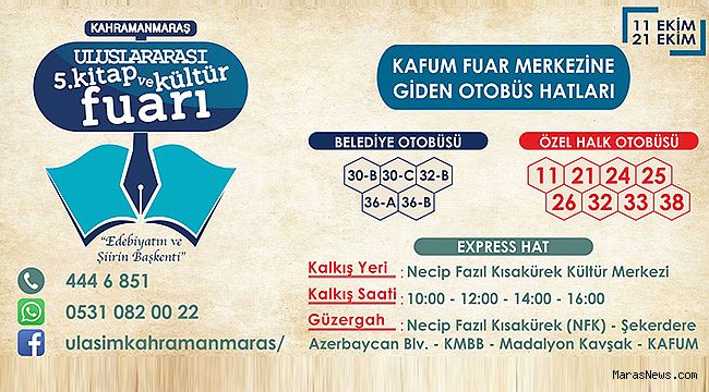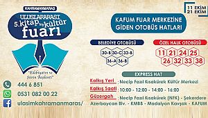 Kahramanmaraş 5. Kitap ve Kültür Fuarı’na gitmek isteyen vatandaşlarımız