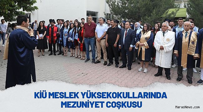 Ardından KİÜ Rektörü Prof. Dr. Sami Özgül tarafından, Elbistan Meslek Yüksekokulu dönem birincisi Ebrar Sevinçler ve Sağlık Hizmetleri Meslek Yüksekokulu dönem birincisi Bayram Aslan’a plaket ve başarı belgeleri takdim edildi. Kahramanmaraş Sütçü İmam Üniversitesi (KSÜ) Rektörü Prof. Dr. Niyazi Can, KİÜ Rektör Yardımcısı Prof. Dr. Nuri Kahveci, KİÜ Dekanları ve Meslek Yüksekokulu Müdürleri ve Genel Sekreter Vekili Cemil Toktay, akademik ve idari personel ile öğrenci velilerinin de katıldığı programda, eğitim gördükleri programlarda dereceye giren öğrencilere başarı belgeleri ve diplomaları takdim edildi.