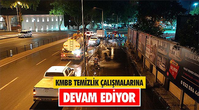 KMBB Çevre Koruma ve Kontrol Dairesi Başkanlığına bağlı 40 kişilik temizlik ekipleri çalışmalarına aralıksız devam ediyor. Gece saatlerinde gerçekleştirilen çalışmalarda Kent Meydanı, Trabzon Caddesi, Azerbaycan Bulvarı, Hükümet Caddesi, Atatürk Bulvarı ve Zübeyde Hanım Caddesi KMBB temizlik ekipleri tarafından köpük ve tazyikli suyla yıkandı. Dört ayrı araç ve 40 kişilik temizlik ekibiyle yürütülen süpürme, yıkama ve dezenfekte çalışmaları sayesinde hem görüntü kirliliği ortadan kalkıyor, hem de sıcak havadan dolayı artan kötü koku ile insan sağlığını tehdit edici bakteri ve sinek oluşumu önleniyor.