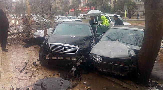 otomobile çarparak ancak durabildi. Kazada her büyük çapta maddi hasar