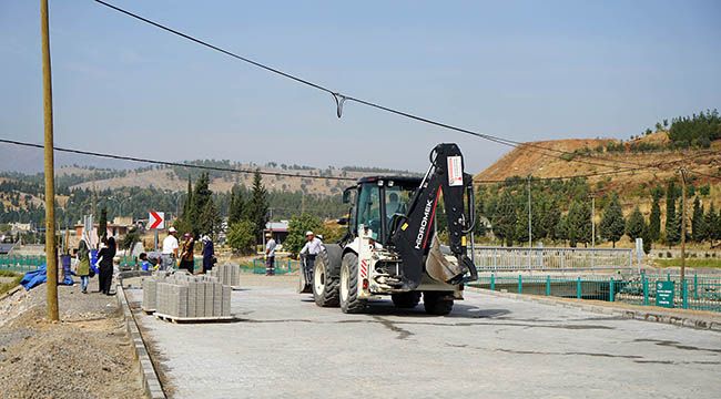 üzerine yaptığı köprünün bağlantı yoluna kilit parke taşı döşeme çalışmalarına