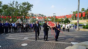 Fatih Türkmener ile çok sayıda muhtar katıldı. Anıta çelenk sunma törenini