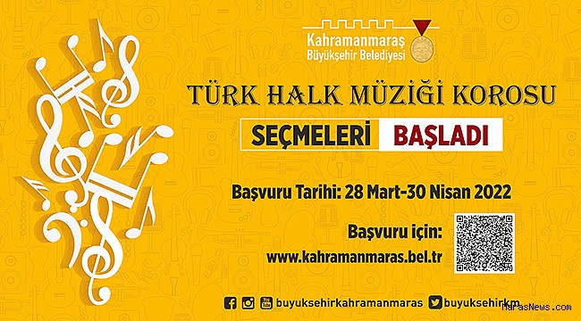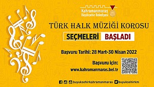 Kahramanmaraş Büyükşehir Belediyesi, sosyal belediyecilik hizmetleri kapsamında faaliyetlerini aralıksız sürdürüyor. Bu kapsamda, Türk müziğini araştırmak, öğretmek ve yaygınlaştırmak için Büyükşehir Belediyesi bünyesinde Çocuk ve Türk Halk Müziği Korosu kurulacak. 28 Mart Pazartesi günü (bugün) başlayıp 30 Nisan Cumartesi gününe kadar devam edecek başvurular https://kahramanmaras.bel.tr/duyuru/2022/03/24/kahramanmaras-buyuksehir-belediyesi-halk-muzigi-ve-cocuk-korosu-basvurulari web adresi üzerinden online olarak yapılabilecek. Seçmeler ise başvuruların sona ermesinin ardından 11 Mayıs Çarşamba günü Necip Fazıl Kısakürek Kültür Merkezinde bireysel ve yüz yüze yapılacak.