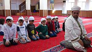 İmam Hatibi Şevket Bozdoğan çocuklara hem camiyi tanıttı hem de dini bilgiler