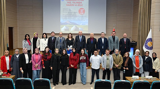 Panel oturumunda KSÜ İnsan ve Toplum Bilimleri Fakültesi Tarih Bölümü Öğretim Üyesi Doç. Dr. Hikmet Demirci, “Toplumun Kutlu Çadırı: Türk Topluluklarında Kadın ve Aile” başlıklı sunumunda, tarih boyunca kadının toplumsal yaşam ve aile içindeki rolünü ele aldı.