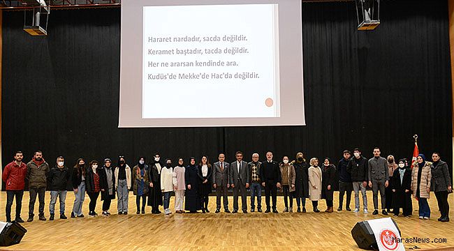 Program kapsamında Fen-Edebiyat Fakültesi Tarih Bölümü öğrencileri; Kübra Yağmur ‘Hacı Bektaş Veli’nin Hayatı ve Bektaşilik Anlayışı’ ve Güler Telbisoğlu ‘Hacı Bektaş Veli’nin Tasavvuf Anlayışı’ başlıklı sunumlarını gerçekleştirdiler.