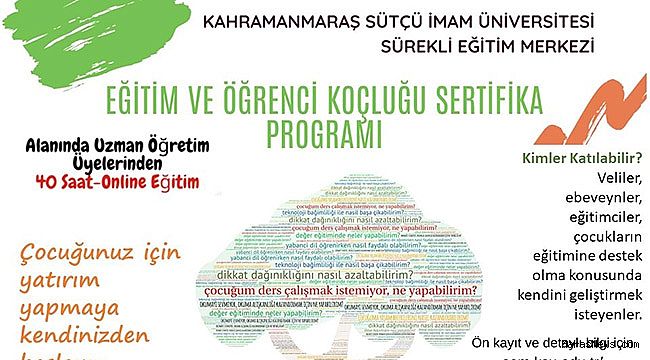 Okul çağı öğrencilerini akademik, sosyal ve duygusal açıdan desteklemeye yardımcı rol ve becerilerin kazandırılmasını amaçlayan programa velilerin yanı sıra kendini bu alanda geliştirmek isteyen herkes başvuru yapabilecek. KSÜ Sürekli Eğitim Merkezi Müdürü Doç.Dr. Ahmet TEKBIYIK; “bilimsel çalışmalar, velileri tarafından pedagojik açıdan desteklenen çocukların okulda ve yaşamda başarılı olduklarını gösteriyor, aileler çocuklarının eğitimine destek olmak için hiçbir fedakarlıktan kaçınmayarak onlara maddi ve manevi anlamda yatırım yapıyorlar, ancak onları destekleyici roller konusunda yeterli bilgi sahibi değiller. Biz de KSÜ’nün toplumsal misyonu çerçevesinde velilere; çocuğunuz için yatırım yapmaya kendinizden başlayın diyerek bu programı hayata geçirdik.” dedi. Uzaktan öğretim yöntemiyle çok sayıda öğretim üyesinin canlı dersler vereceği 40 saatlik program içeriğinin Türkiye’de benzerinin bulunmadığı belirtti. Programa başvurular sem.ksu.edu.tr adresinden yapılabiliyor.