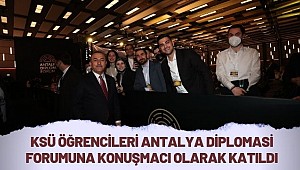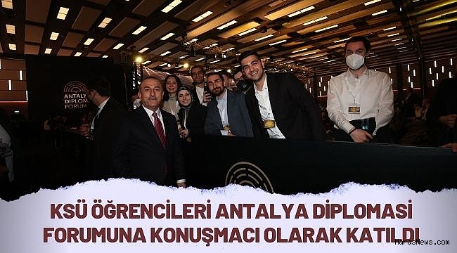 Yurt içi ve yurt dışındaki üniversiteler tarafından seçilen 400 öğrenci de Antalya Diplomasi Forumuna katılırken, KSÜ İktisadi ve İdari Bilimler Fakültesi Siyaset Bilimi ve Uluslararası İlişkiler Bölümü lisans öğrencileri Miraç Özcan ve Şevket Kiracı, yüksek lisans öğrencileri Zehra Gül Çalışır ve Muhammed Hasan Fatih Çal konuşmacı olarak katıldı.