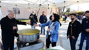 İktisadi ve İdari Bilimler Fakültesi ve Eğitim Fakültesi arasında yer alan ikram standını ziyaret eden üniversitemiz Rektörü Prof. Dr. Niyazi Can, öğrencilere çorba dağıttı.