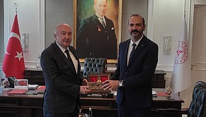 Ziyaret kapsamında KSÜ Rektörü Prof. Dr. Alptekin Yasım, Sağlık Bakan Yardımcısı Doç. Dr. Tolga Tolunay'a maraş işi ceviz oyma sandık takdim etti.