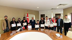KSÜ Wushu Kung Fu Takımı Antrenörü Ahmet Gözükara ve madalya elde eden sporcuları tebrik eden Rektör Can, uluslararası şampiyonalarda mücadele edecek sporculara başarılar diledi.