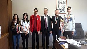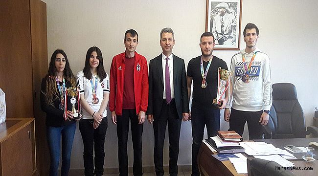 Derece alan sporcular ve Antrenör Gözükara’yı makamında