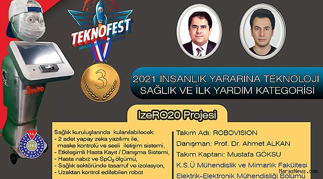 Yapay zekâ destekli, sağlık alanında işlevsel, otonom robot IzeRO20’yi hazırlayan ‘RoboVision’ takımını ve öğretim üyemizi tebrik eder, başarılarının devamını dileriz.
