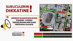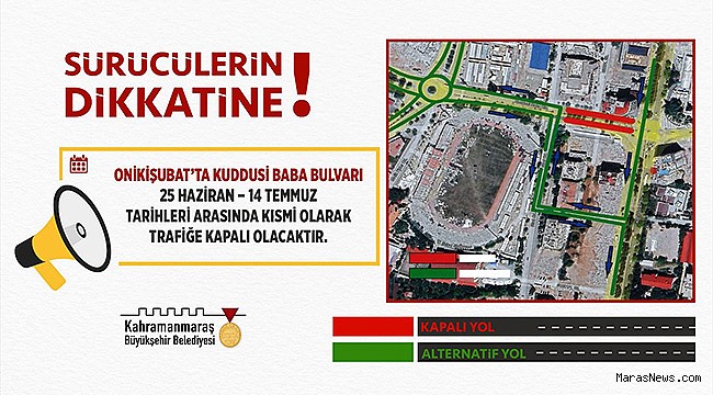 Yeni Kahramanmaraş’ın imar ve inşası noktasında tüm alanlarda çalışmalar hummalı bir şekilde devam ederken Kahramanmaraş Büyükşehir Belediyesi, Onikişubat ilçesi Hayrullah Mahallesi’nde gerçekleştirilecek zemin iyileştirme ve çevre düzenlemeleri dolayısıyla Kuddusi Baba Bulvarı’nın 25 Haziran – 14 Temmuz tarihleri arasında kısmi olarak trafiğe kapalı olacağını duyurdu. Ulaşım Hizmetleri Dairesi Başkanlığından yapılan açıklamada, bölgede gerçekleştirilecek çalışmalar sırasında ulaşımda herhangi bir olumsuzlukla karşılaşılmaması için trafik işaret ve işaretçilerine dikkat edilmesi ve ulaşımda alternatif güzergâhların kullanılmasının önem arz ettiği belirtildi.