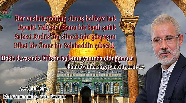 Kahramanmaraş Baro’su adına bir açıklama yapan Baro Başkanı Vahit Bağcı, “Kudüs