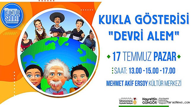 Kahramanmaraş Büyükşehir Belediyesi, çeşitli kültür sanat etkinliklerini Kahramanmaraşlılarla buluşturmaya devam ediyor. Etkinlikler kapsamında, 17 Temmuz Pazar günü ‘Devri Alem’ adlı kukla gösterisi çocuklarla buluşacak. Mehmet Akif Ersoy Kültür Merkezi’nde gerçekleştirilecek etkinlik saat 13.00 – 15.00 ve 17.00 olmak üzere üç seans şeklinde sahnelenecek. Kültür Spor ve Turizm Dairesi Başkanlığı’ndan etkinliğe ilişkin yapılan açıklamada, “Bir yandan eğlendirirken bir yandan da öğretecek ücretsiz etkinliğimize tüm çocuklar davetlidir” ifadelerine yer verildi.