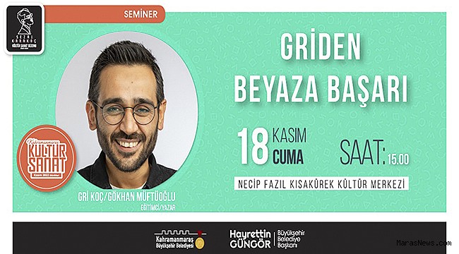 Kahramanmaraş Büyükşehir Belediyesi, Sezai Karakoç Kültür Sanat Sezonu kapsamında çeşitli etkinlikleri vatandaşlarla buluşturmaya devam ediyor. Kasım ayı etkinlikleri kapsamında; konferansları, yayınları ve kitaplarıyla sadece sınav dönemindeki gençlerin değil her yaştan insanın büyük bir beğeniyle takip ettiği Gri Koç olarak bilinen Eğitimci – Yazar Gökhan Müftüoğlu, 18 Kasım Cuma günü Necip Fazıl Kısakürek Kültür Merkezi’nde öğrencilerle bir araya gelecek. ‘Griden Beyaza Başarı’ konulu seminer saat 15.00’da başlayacak. Büyükşehir Belediyesi’nden yapılan açıklamada, etkinliğe sınav dönemindeki öğrenciler başta olmak üzere tüm gençler davet edildi.