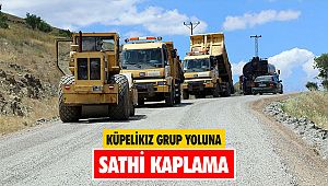 uzunluğundaki grup yolunda sathi kaplama çalışmalarına devam ediyor. Ekipler