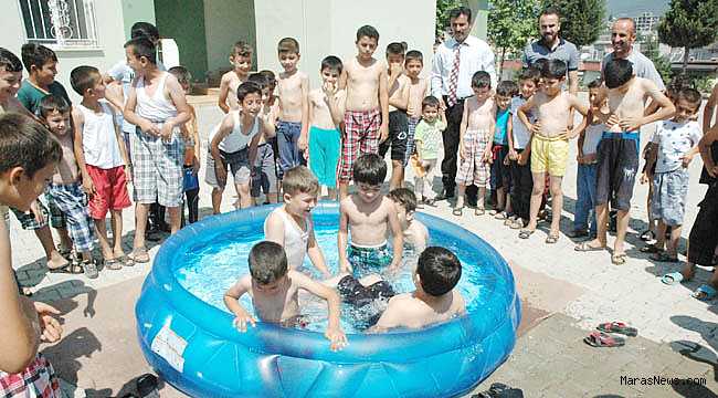 Kahramanmaraş'ın Dulkadiroğlu ilçesi Pekeller Camii'nde açılan Kur'an kursuna katılan öğrencilerin motivasyonunu arttırmak için din görevlileri tarafından caminin avlusuna yapay havuz kuruldu. Pekeller Camii İmam Hatibi Yusuf Karaoğlan'ın aşırı sıcaklarda çocukların sıkılmaması için bulduğu yapay havuz çözümü hem çocukları hem velileri mutlu etti.