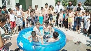 Camide eğitim gören öğrenciler ise, eğitmenleri tarafından kurulan havuzla eğlenerek eğitim almanın mutluluğunu yaşadıklarını söylediler. (İHA)