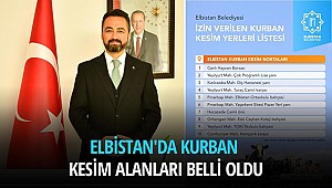 Elbistan Kurban Hizmetleri Komisyonu, vatandaşların kurban ibadetini rahat ve hijyenik bir ortamda gerçekleştirebilmeleri için kesim noktalarını belirledi. Buna göre, Elbistan’da 10 farklı noktada kurban kesimi yapılabilecek. İlçe genelindeki kurban kesim alanları şu şekilde olacak; Hayvan borsası, Yeşilyurt Çok Programlı Lise yanı, Kızılcaoba Mahallesi eski diş hastanesi yanı, Yeşilyurt Mahallesi Hacı Turaç Cami karşısı, Pınarbaşı Mahallesi Elbistan Ortaokulu bahçesi, Pınarbaşı Mahallesi açık pazar yeri, Hocazade Camii önü pazar yeri, Tepebaşı Caddesi okul bahçesi, Cumhuriyet Mahallesi Hacı Esat Efendi Caddesi eski pazar yeri karşısı ve Yeşilyurt Mahallesi TOKİ İlkokulu bahçesi.”